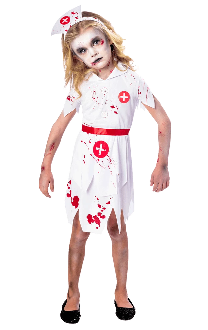 Grab this Kids Zombie Nurse Costume with your rotting, mouldy hands this Halloween to ensure your little one looks like the most gruesome kid on the block!