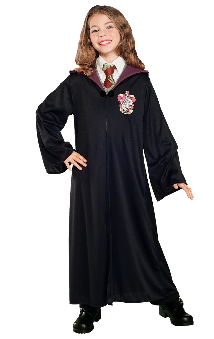 Bring the magical world of Harry Potter to life with our officially licensed Kids Hermione Granger Costume. This black and burgundy robe will turn any muggle into a fully fledged wizard with just a flick of the wand. Practice your spells, enchant your classmates… just watch out for You Know Who!