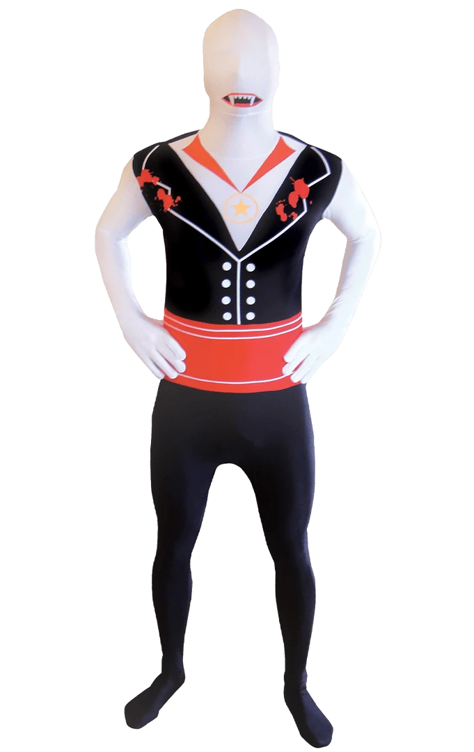 The Count Morphula Morphsuit includes a full suit with trousers, shirt, waist coat, mouth and fangs printed on. Zip fastening is at back and morphsuit logo. You can see through them, drink through them and party in them. Other accessories are available separately.