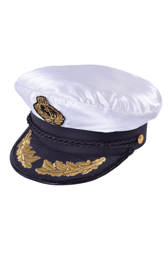 How do we know you’re the captain without the right outfit and symbols? Well, you need a Captains Cap. This is a peaked sailor’s cap with anchor badge gold leaf design.