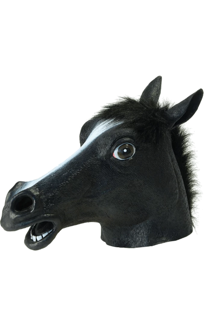 Go bucking crazy in the Funny Black Horse Facepiece! For your next party, festival or stag do this novelty black horse facepiece will cause quite the scene! Not only is it funny, but it’s also kinda creepy and is known to cause a few night-mares! (get it?!). This Latex facepiece features big beady eyes, ears, mouth and tufts of hair across the back. Perfect for your next party, so start horsing around and transform into the black beauty you really are!