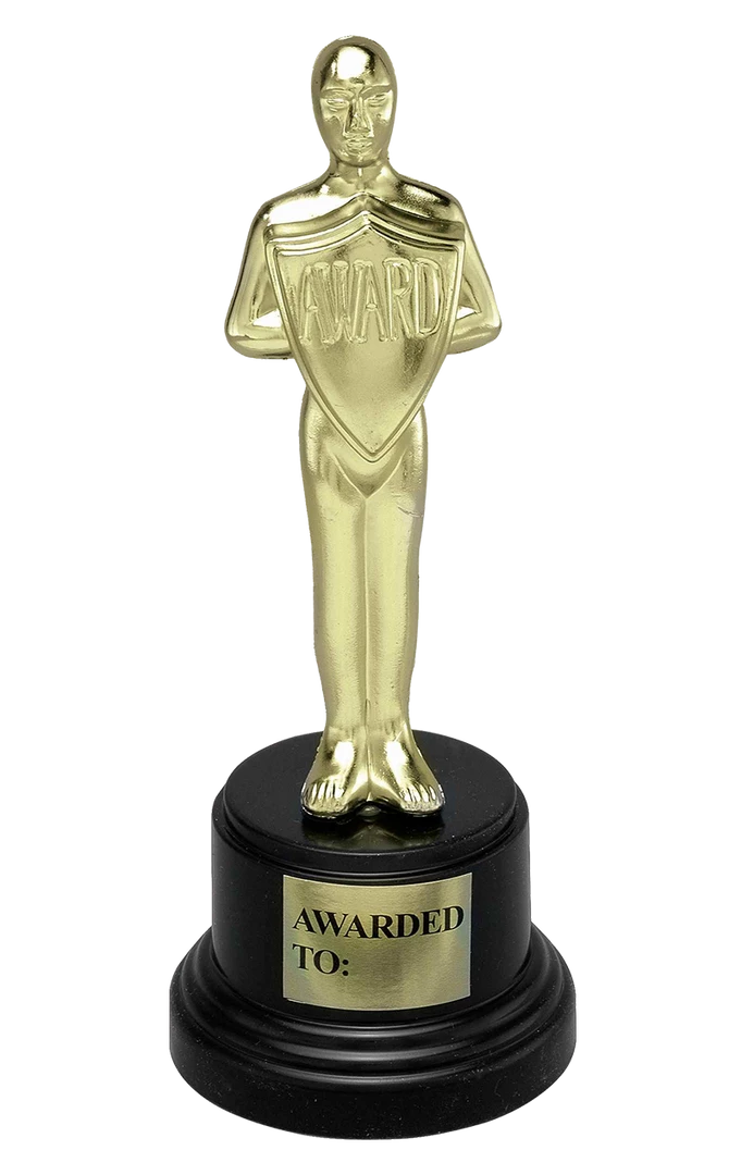 Are you having an Oscars party and need a trophy to pass around for fun? Going to a fancy dress party where you are going to be a famous Hollywood star clasping their just awarded Oscar and about to do a speech? Grab yourself the Gold Plastic Statue Trophy and start practising those fake smiles and tears!