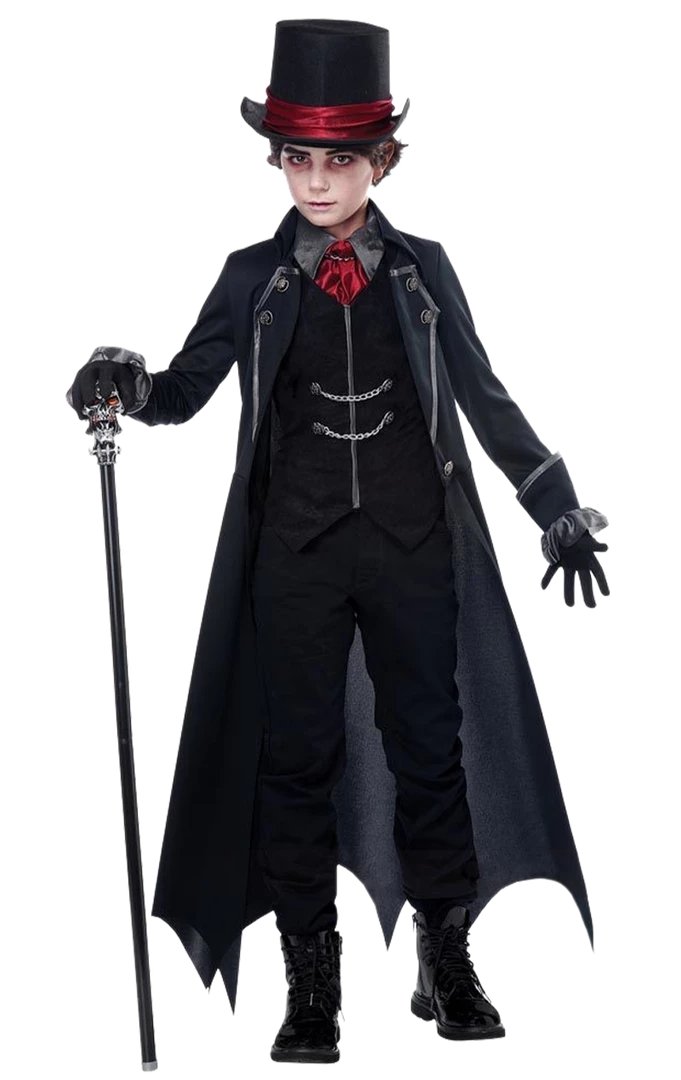 Your little one will look like Lord of the Manor in the Kids Vintage Vampire Costume. This look is gothic and very reminiscent of classic vampire tales and takes that have passed. This boys vampire costume features a traditional long black coat, a smart vest, a cravat and a matching top hat, so your little one will look irresistibly suave this Halloween. He’ll have a thirst for something more than sweets when he’s out trick-or-treating. So tell the neighbours to beware, because this vampire bites!