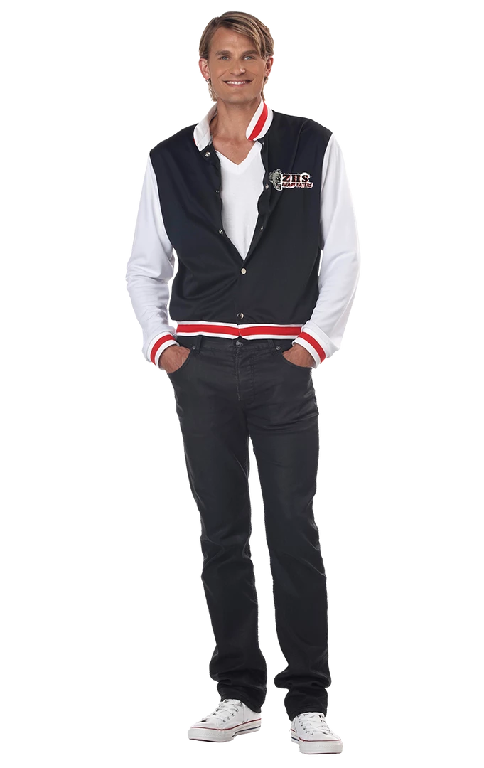 Instantly jump into a high school with the jock style Mens Letterman Jacket Zombie Costume. Play the role of the school heartthrob, the bad boy or the popular kid in this classic sports jacket. The difference is the zombie twist! An easy halloween costume idea, this jacket features iron-on patches with the initials “ZHS” for Zombie High School, and had the motto “brain eaters” on the back. Zombify your look and add lashing of blood this Halloween!