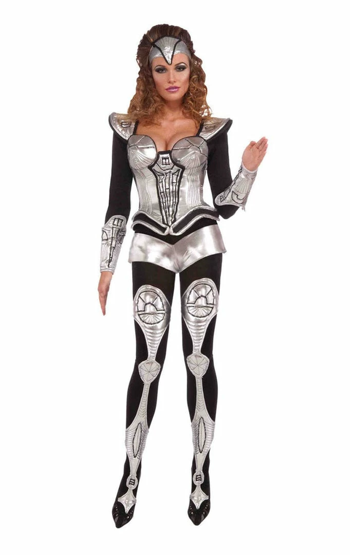 Going to a futuristic or Sci-Fi themed party? Want to make some sparks fly and hot-wire the party with your explosive outfit? Slip on the head turning Womens Silver Cyborg Costume and feel the surge of electricity propel you as you enter the party, so much so you’ll be doing the robot with lasers all around on the dance floor!