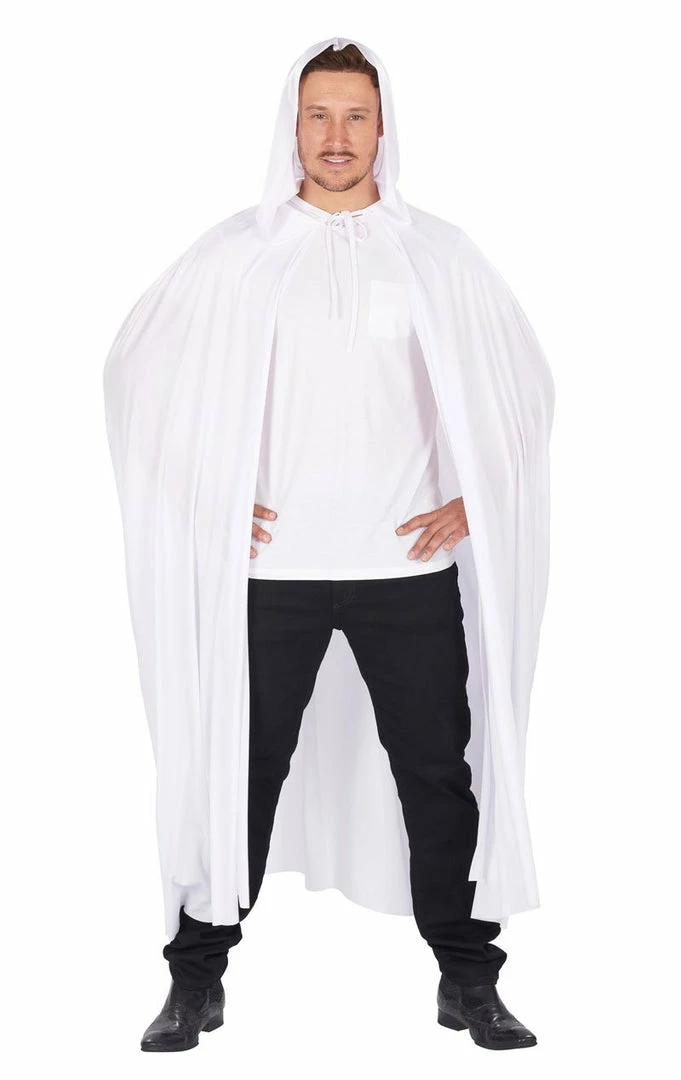 Don this Unisex White Hooded Cape and conceal your identity! It’s the perfect costume accessory for anyone that’s dressing as a ghost, wizard, angel, sorcerer; or any other creature or character that conceals their body with a glowing white cloak. It makes a quick and easy costume for Halloween – simply wear it over your normal clothes and add face-paint and accessories.