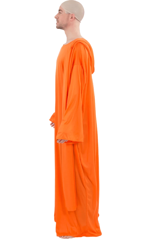 The Adult Buddhist Monk Costume is made up of a vibrant orange floor length robe and shawl, inspired by the traditional outfit in South East Asia.