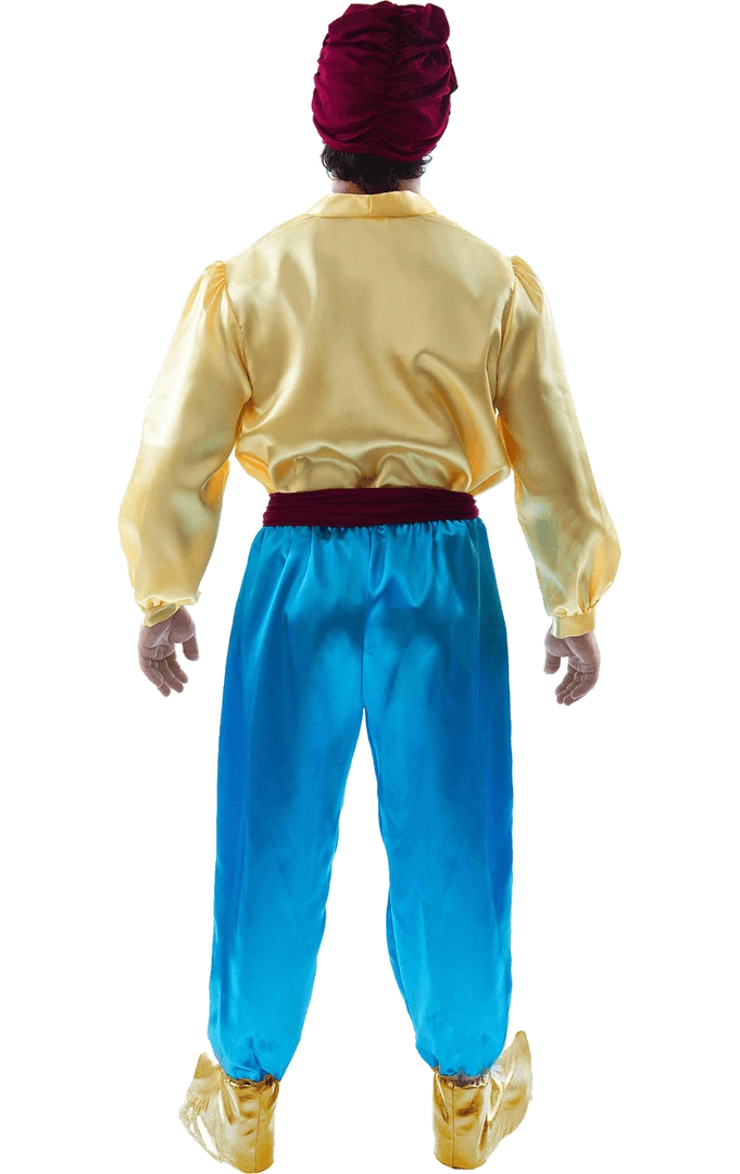 Includes: Top, Trousers with attached shoe covers, Turban, Belt