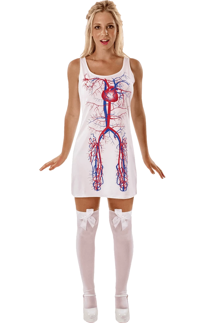 Looking for a Halloween costume for a low price? Something simple and easy, the Blood Pumping Artery Costume shows off the anatomy of veins inside the body. Wear it plain or splash on some blood and wounds for an extra gory Halloween style. The same veiny style is reflected on the back of the dress too. As it’s such a low price, you can really make it your own. Add a few slashes and tears, squirt as much blood as you like onto it and pair it up with skull face makeup!