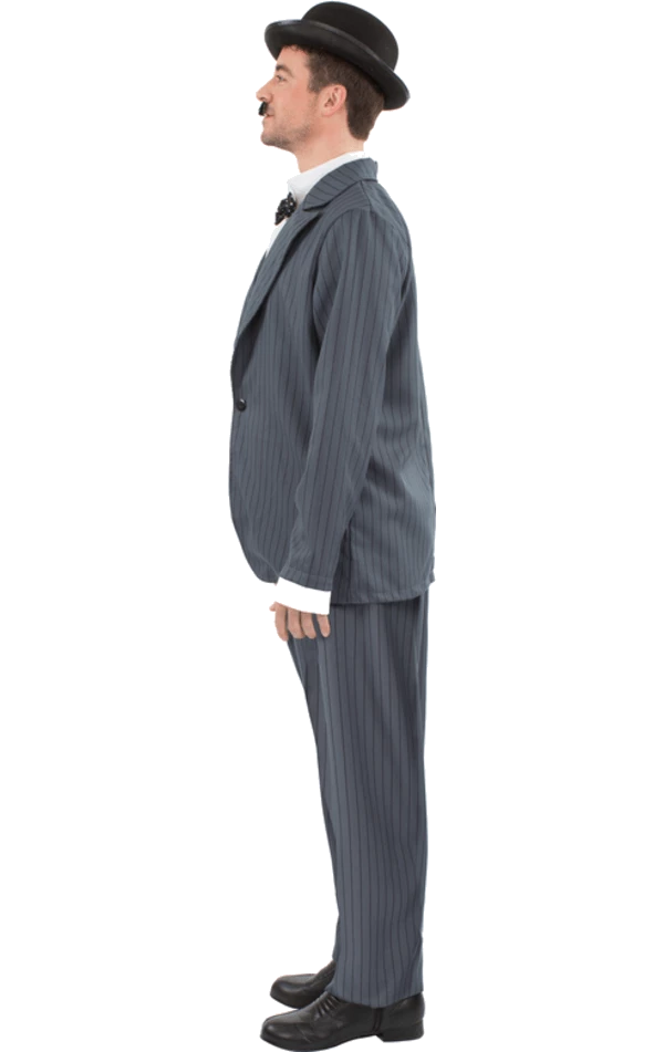 The Adult Mr Stan Laurel Costume is made up of a grey pin-stripe jacket with attached white shirt front and matching trousers. Completing the look is a black and white polka dot bow tie so you look smart and sophisticated as you head to the party.