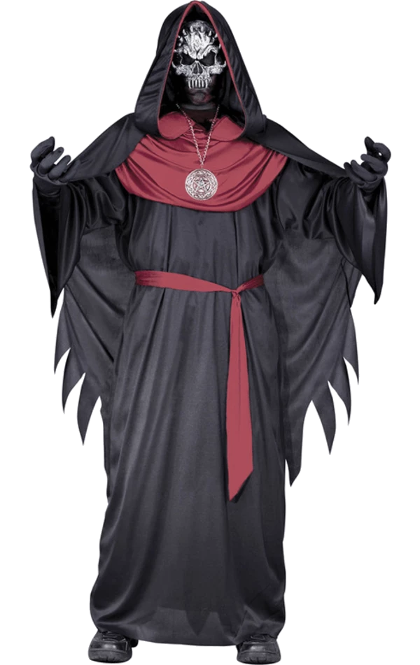 Includes: Robe, Detachable Hooded Capelet, Gloves, Waist Sash, Half Mask, Medallion