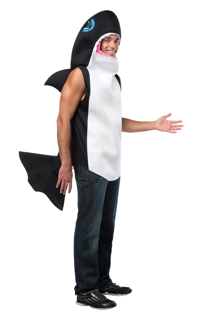 This Killer Whale Costume costume includes a light weight suit that goes over your own clothes. Fins and tail are attached. Other accessories are available separately.