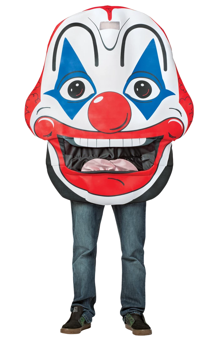 Featured on the Giant Clown Costume is a colourful print of a clown face, a big red nose and classic make-up. Not only is it a huge costume and will be seen by everyone at the party, but the mouth moves too. Open and close the clown jaw as you pretend to talk – it’ll certainly bring the laughs with friends. Get practicing your best clown impression!
