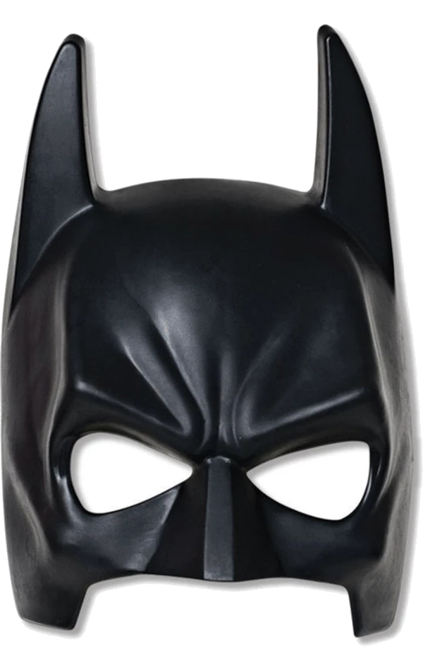 Batman Adult Facepiece simply goes over the front of your face and is secured in place with elastic that goes around the back of your head. Made from a stiff plastic material. (material not listed).