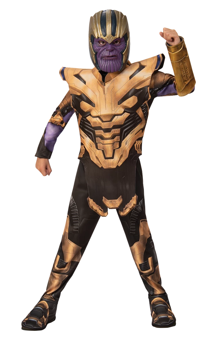 The Kids Thanos Endgame Costume is inspired by the new suit from the Avengers: Endgame movie. It’s made up of a gold and black jumpsuit with intricate detailing, featuring boot covers and a padded with a cool armour design. Completing the look is a realistic Thanos mask so everyone will know who your little one is when they enter the party.
