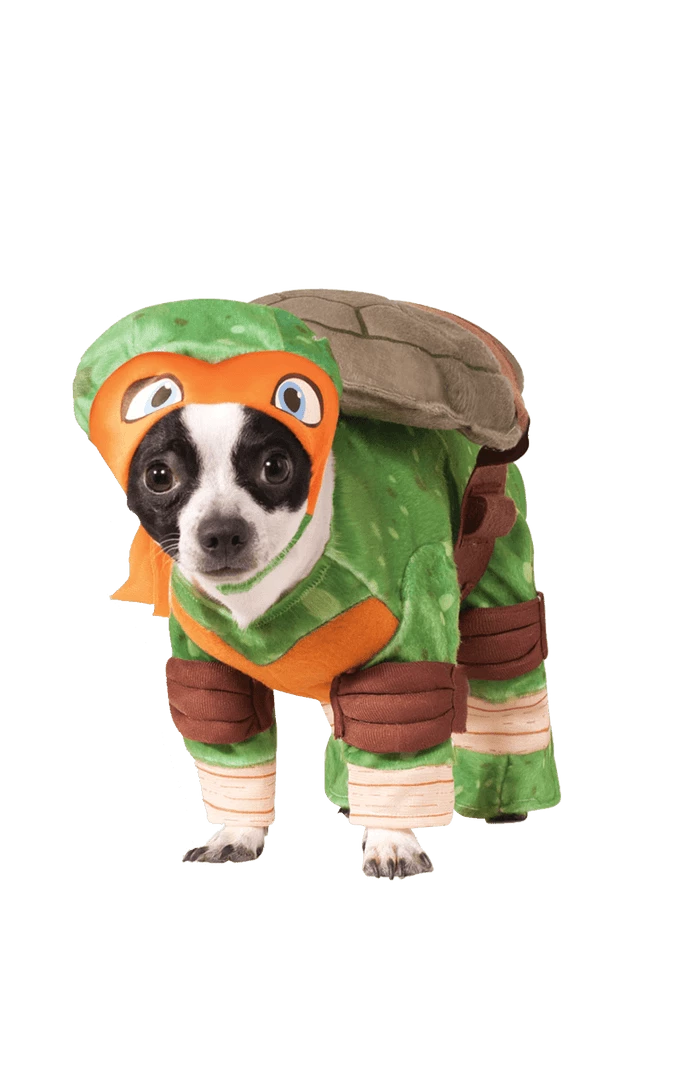 The Teenage Mutant Ninja Turtles were a brilliant part of a lot of our childhoods! Why not transform your pup into the effortlessly cool, pizza loving mammal in our Michelangelo – Ninja Turtles Dog Costume! Featuring a soft green bodysuit with shell, green snood with facepiece and brown leg details, this outfit is the real deal!