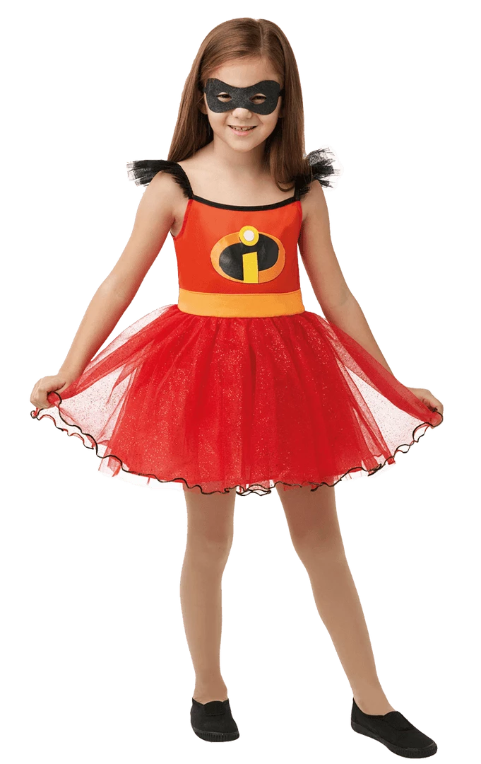The Kids Incredibles Girls Tutu Costume includes a beautiful bright red dress with a tutu skirt. It features intricate detailing throughout to match the original design of the Incredibles uniform, as well as the iconic ‘I’ logo. Completing the look is a black eye mask to disguise your child’s identity as they take on the world and become invisible, just like Violet.