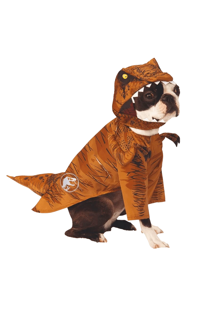 This Officially Licensed Jurassic World: Fallen Kingdom T-Rex Dinosaur Dog Costume will make your dog look a lot more powerful than he or she is! Watch out, that bark will turn to a growl and those teeth will become more powerful when they slip this bodysuit on. Product includes step in shirt with attached arms and headpiece.