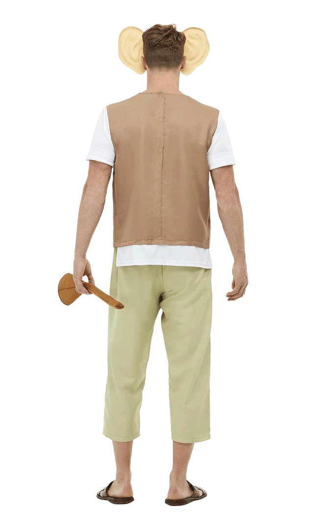 This costume BFG costume features green shorts, a top with attached waistcoat, his signature giant ears headband and a felt horn used to blow good dreams into the children’s minds.