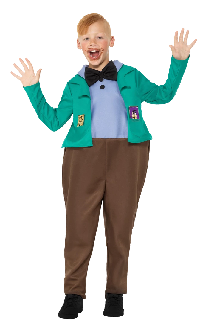 Make sure your little one has a truly choc-tastic World Book Day in our Kids Augustus Gloop Costume! Everyone remembers witnessing this greedy little boy devour his way through Willy Wonka’s chocolate factory… He’s got a bigger appetite than most adults and will stop at nothing to consume as many sugary snacks as he can! Fortunately, he happens to make for a brilliant World Book Day costume and will leave any Roald Dahl fan or mini bookworm smiling all day long. The outfit includes a green and blue top with attached bow tie, brown trousers, a golden ticket and even a prop choolate bar to put in the pockets! Just make sure you don’t stand too close to the chocolate river!