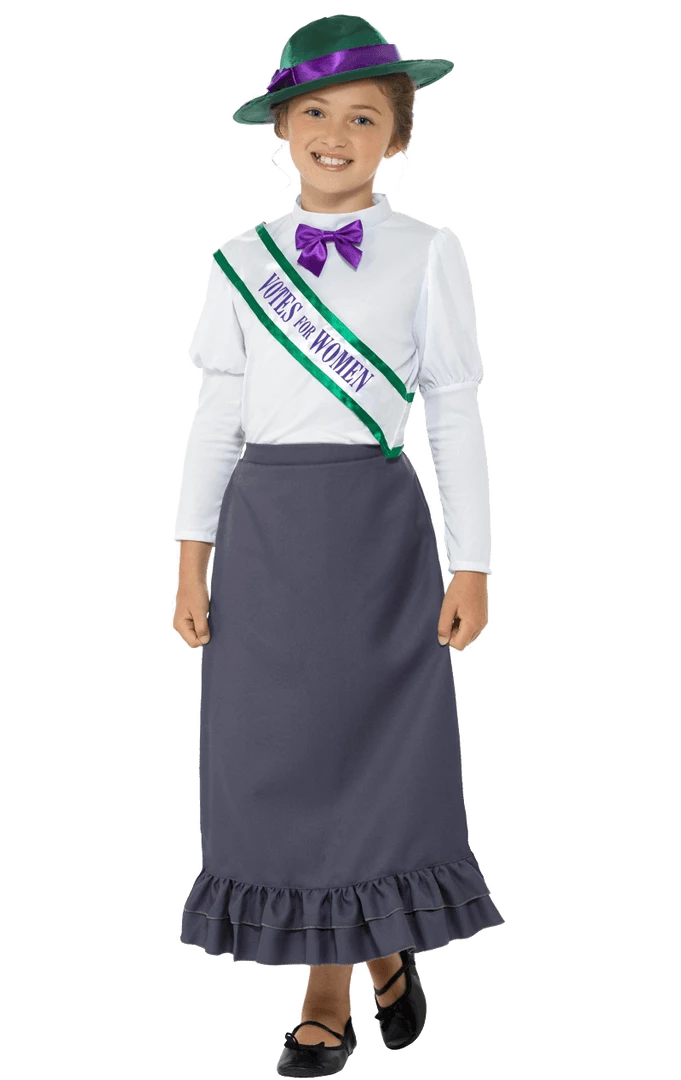 This World Book Day or History Day at school, your daughter will be ever so proud to dress up in the Kids Victorian Suffragette Costume. Complete with a suffragette sash that reads ”Votes For Women”, this smart ensemble will encourage the learning of the story behind women’s rights to vote in Britain. Your little one will understand the movement founded by Emmeline Pankhurst and Millicent Fawcett, and love getting into character for the day! These ladies were ”Soldiers in petticoats” as quoted by Mrs Banks from Mary Poppins!