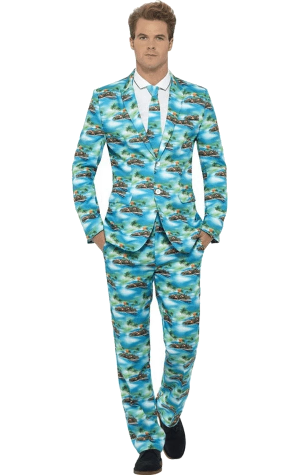 Forget Hawaiian shirts, this summer it’s all about the complete Mens Aloha Hawaiian Suit! Stand out from the crowd of shoddily dressed BBQ goers in this sophisticated desert island pattered number, complete with matching tie. You’re going to look every inch the Hawaiian hero in this!
