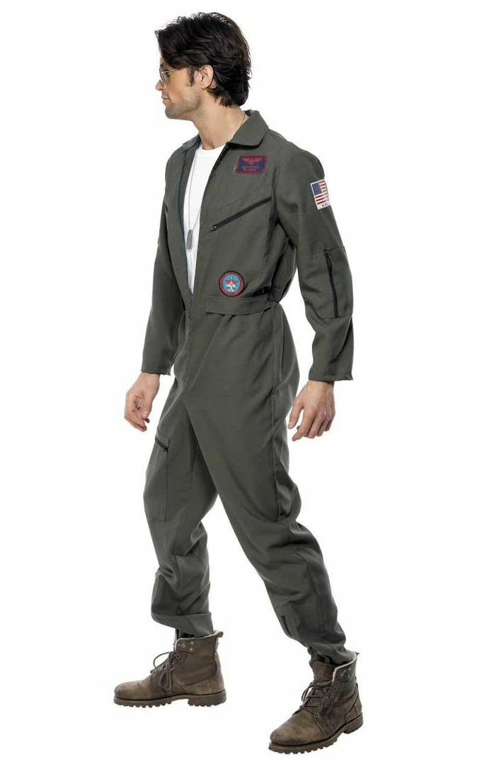 Our officially licensed Mens Top Gun Pilot Jumpsuit Costume is inspired by the famous trio, Iceman, Goose and Maverick. Perfect to wear for group fancy dress or movie themed nights!