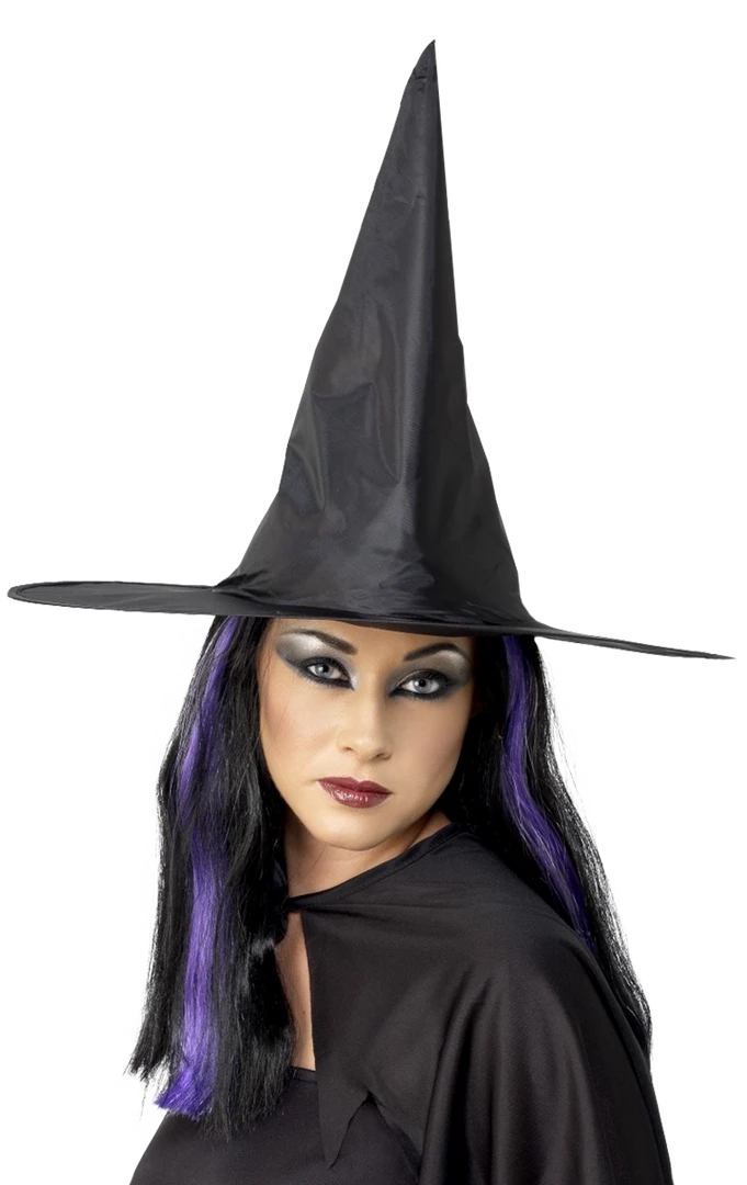 Lightweight Witch hat with a wire section around the edge of the rim to keep it in shape.
