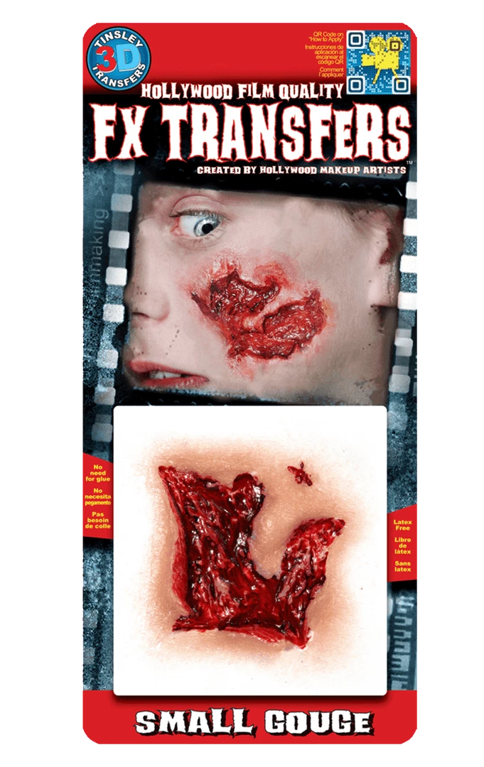 The Small Gouge 3D FX Transfer will help you easily achieve a gory and bloody look this Halloween!