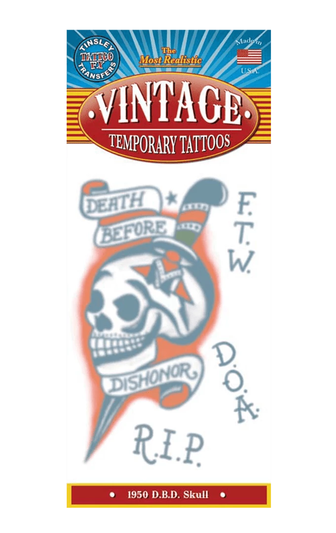 If you’re planning on going all out rebel without a cause this Halloween and you want some fake inkings to prove it, grab and apply the Outlaw Skull Tattoo Accessory and fit right in as a zombie punk, Hells angel or ghoulish goth at Halloween or any fancy dress party!