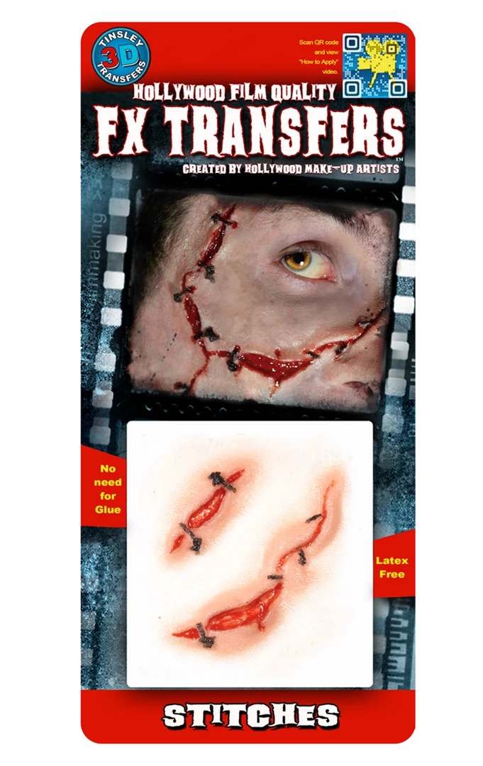 Frankenstein’s monster would be pretty jealous of these very realistic and extremely grotesque 3D Stitches Transfers which really look like someone has stapled your open wounds back together in a haphazard manner! Scare and scar the Halloween party goers when you wear these, it’ll have you in stitches!